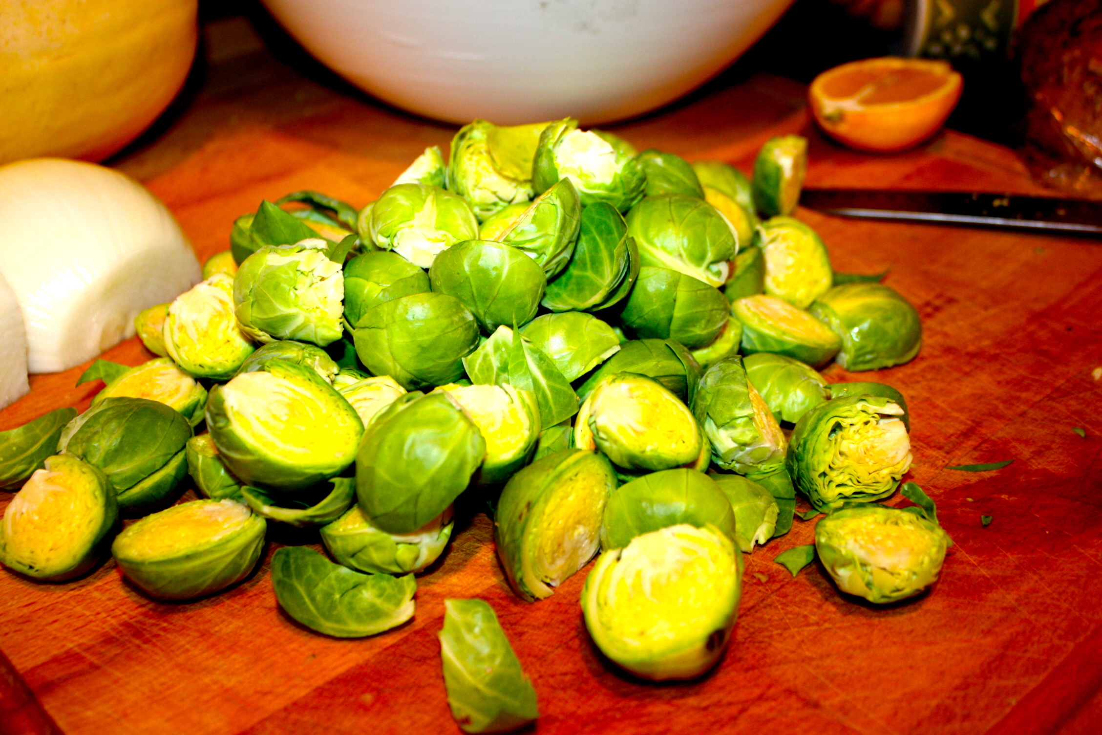 I should also disclose that I had grand plans for my favorite roasted (broiled) brussel sprouts with olive oil, lemon, salt + pepper. I even chopped them up beautifully during the vegetable chopping phase of the night.