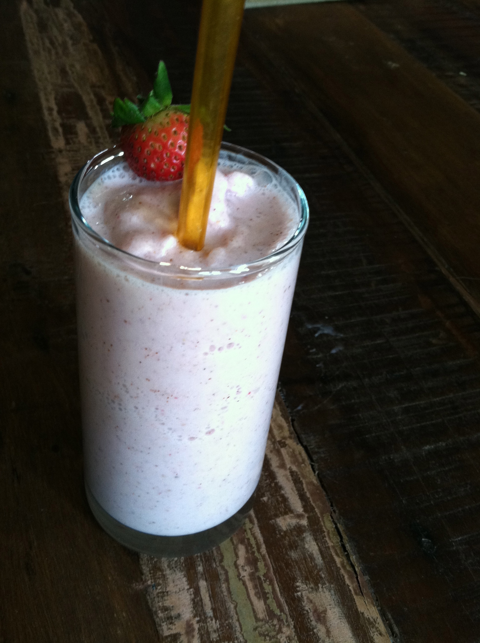 We’re going to call this the ‘thank god strawberries are on plan’ smoothie. It has helped to subside any screams for sugar, and tastes awesome.