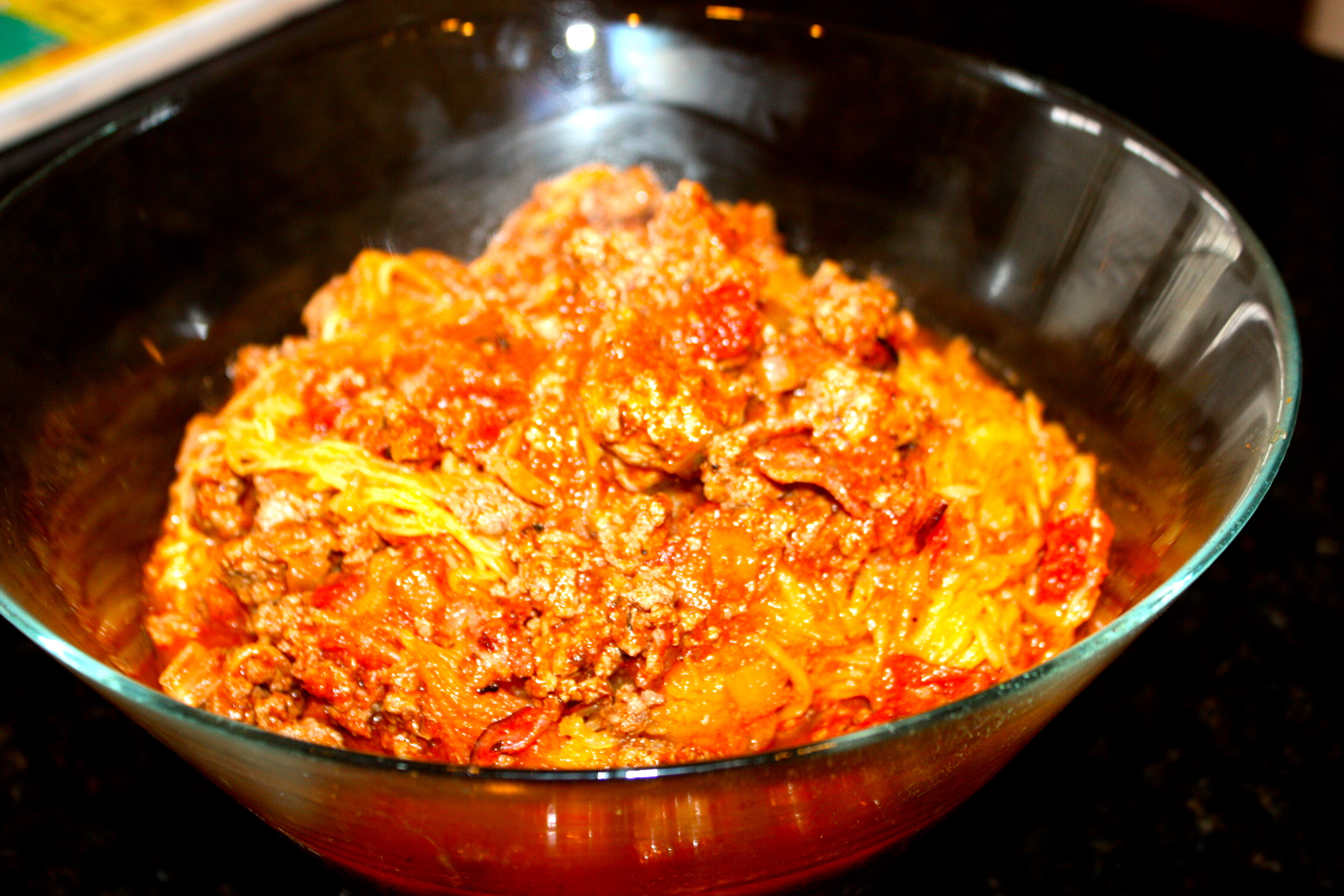 The spaghetti squash bolognese was exactly right. I had finally found a couple of larger squash at Whole Foods (so I didn’t have to roast 5 of the baby ones again), and the ground beef and turkey bacon really made the sauce more flavorful and soaked right into the squash strands.