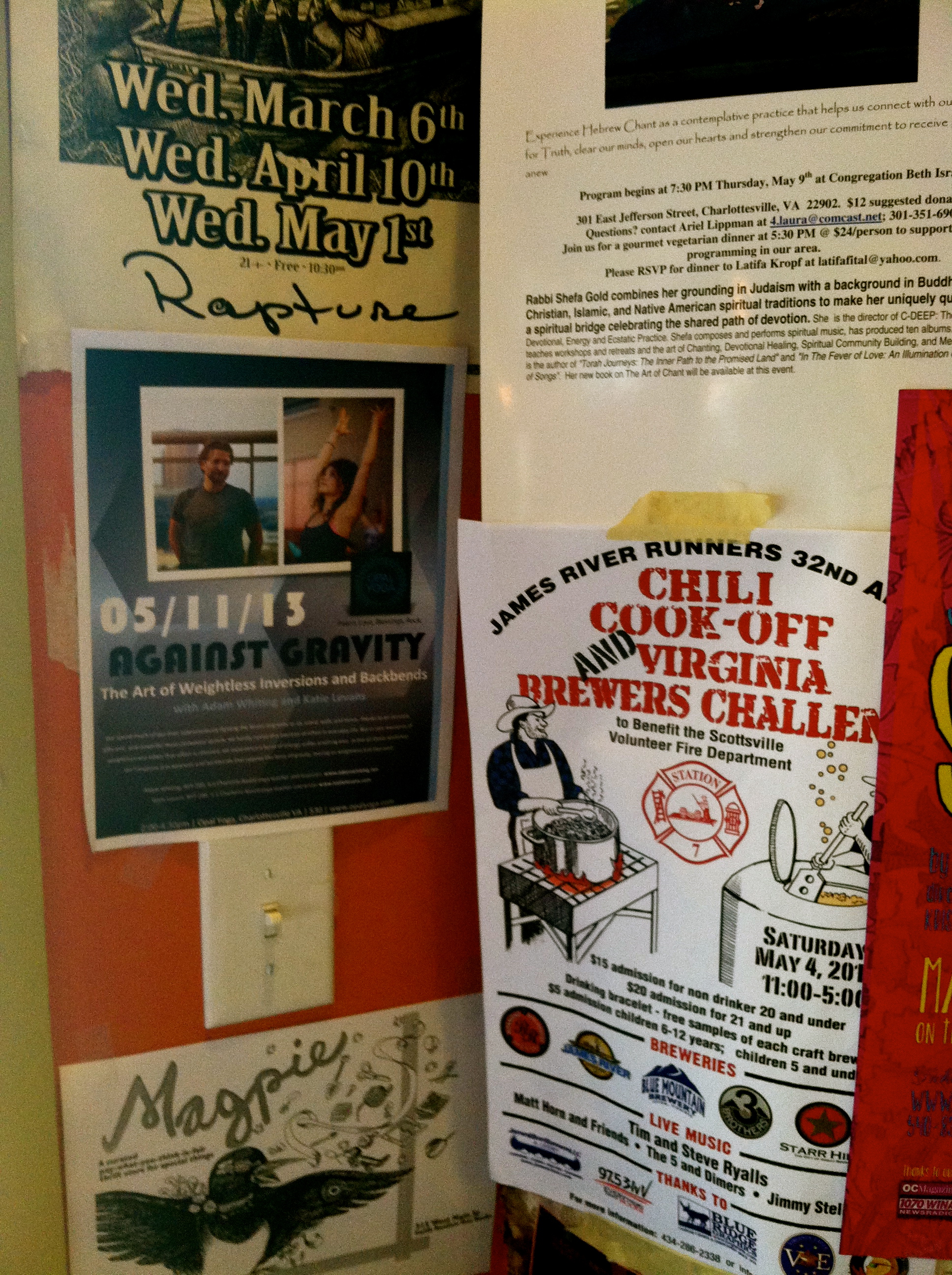As I was heading back out into the world, well fed and caffeinated, I caught a glimpse of this flyer for Adam & Katie’s yoga workshop next weekend at Opal Yoga, right here in the heart of Charlottesville.