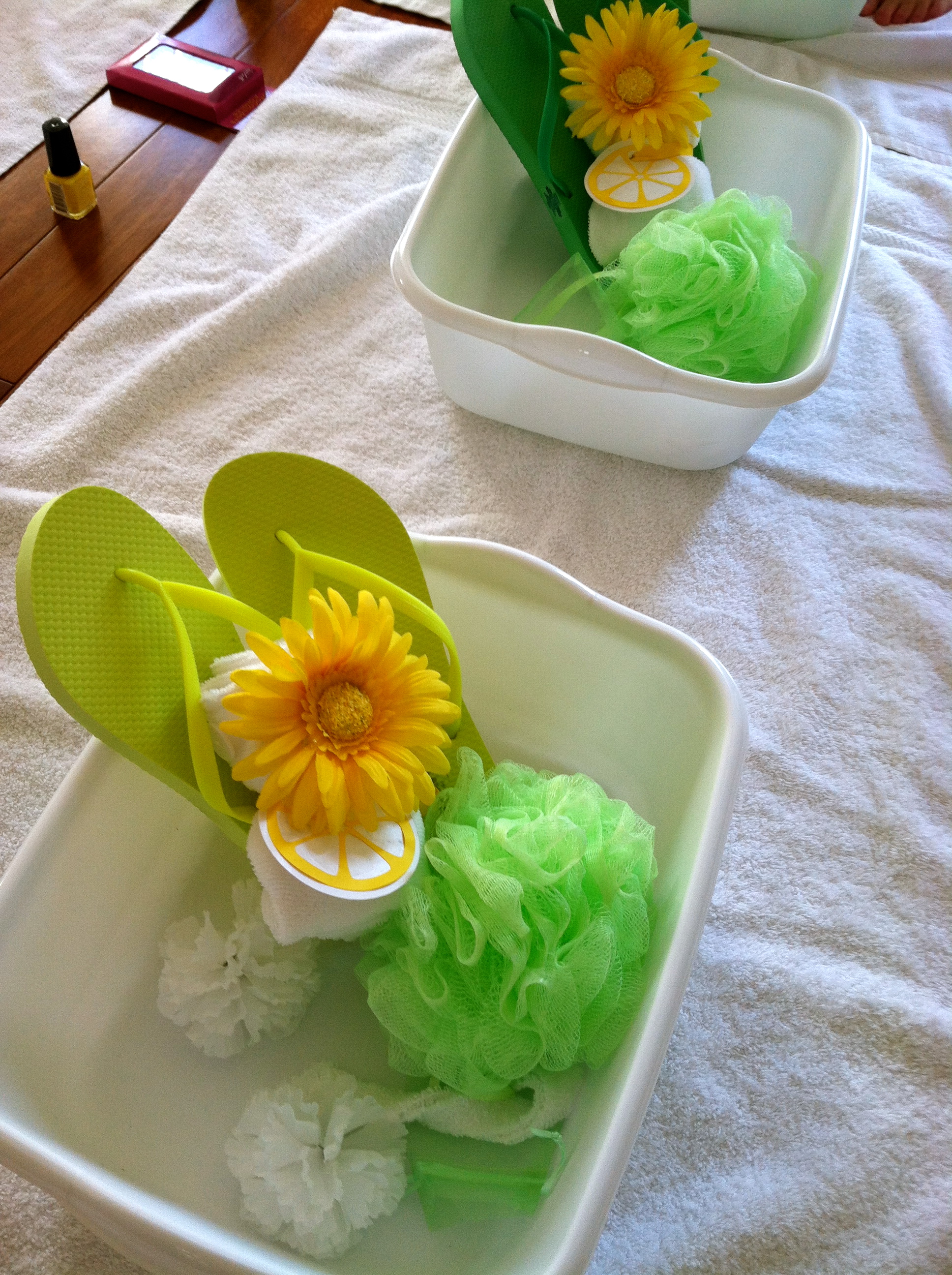 It was a spa party complete with pedicures, make your own bath bombs, and scented oils.