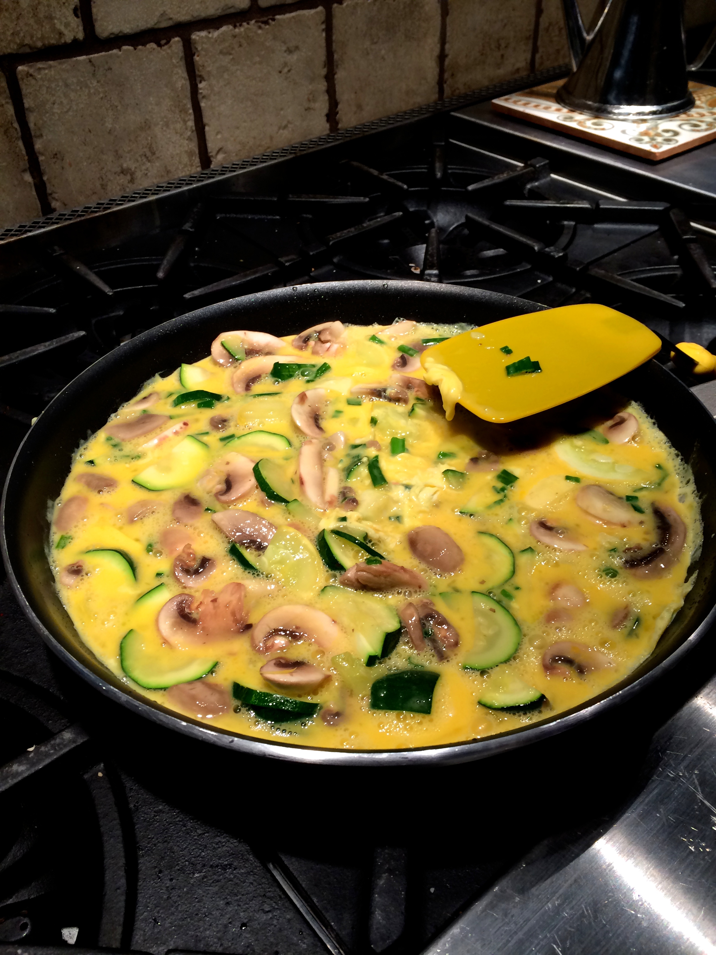 I’m not big on early breakfasts, so I typically start myself off with coffee, and today in order to ease my way back into the swing of things I grabbed my favorite almond milk latte from Milli Joe and got to work. By mid-morning I was ready for some breakfast — Eggs scrambled with zucchini/yellow squash and mushrooms – avocado on the side (standard).