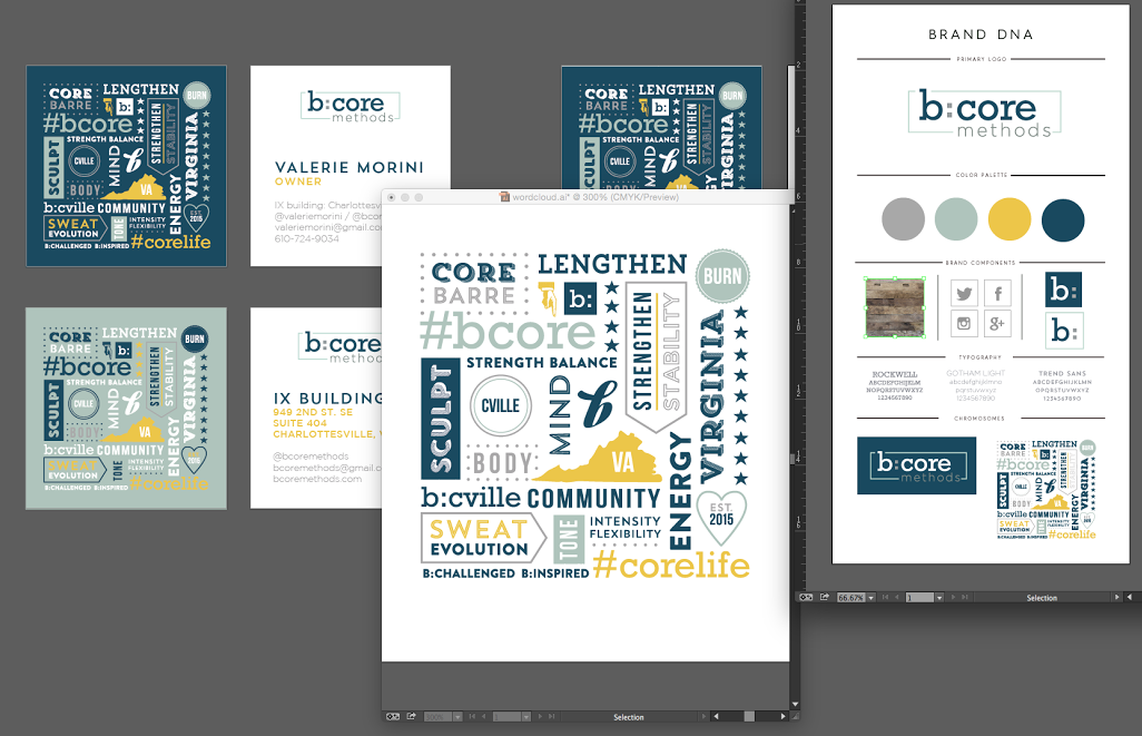 Last week’s excitement stemmed from the finalization of our basic branding and logo/icon. It seems so trivial, but for me it’s the most soulful element of our foundation and it was so important to feel connected to it. Now, here’s where I just goop over our favorite brand designer, Carrie from Pink Toast Ink — she’s seriously awesome. She was behind the re-branding of MADabolic just prior to our opening in Charlottesville, and just totally captures the essence of what b:core is about.