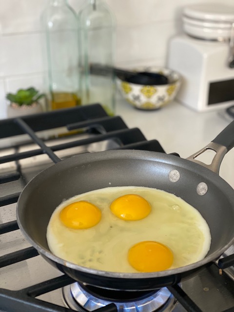 There are so many veggie combinations that work well with eggs, but my go to, most clutch combo these days is a mix of onions, sweet or bell peppers, broccoli, cauliflower rice, and my new thing is adding sliced cherry tomatoes for a little sweetness. It’s a pretty spot on representation of the ‘eat all the colors of the rainbow’ goal, and is amazing for soaking up a runny yolk, (you know, if you like that kind of thing).